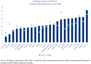 Autos are now the cheapest industry in Europe, with their cyclically adjusted price-to-earnings ratio at just 7.4. While not all manufacturers and suppliers will turn out to be winners, we believe a selective approach can uncover mispriced opportunities.